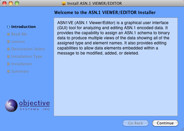 A distribution setup file containing the complete ASN1VE application should have been provided. This would be a disk image file with a name in the following format: