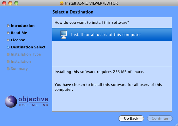 This page, if presented, allows the user to select where to install the software. Select one of the options and click Continue.