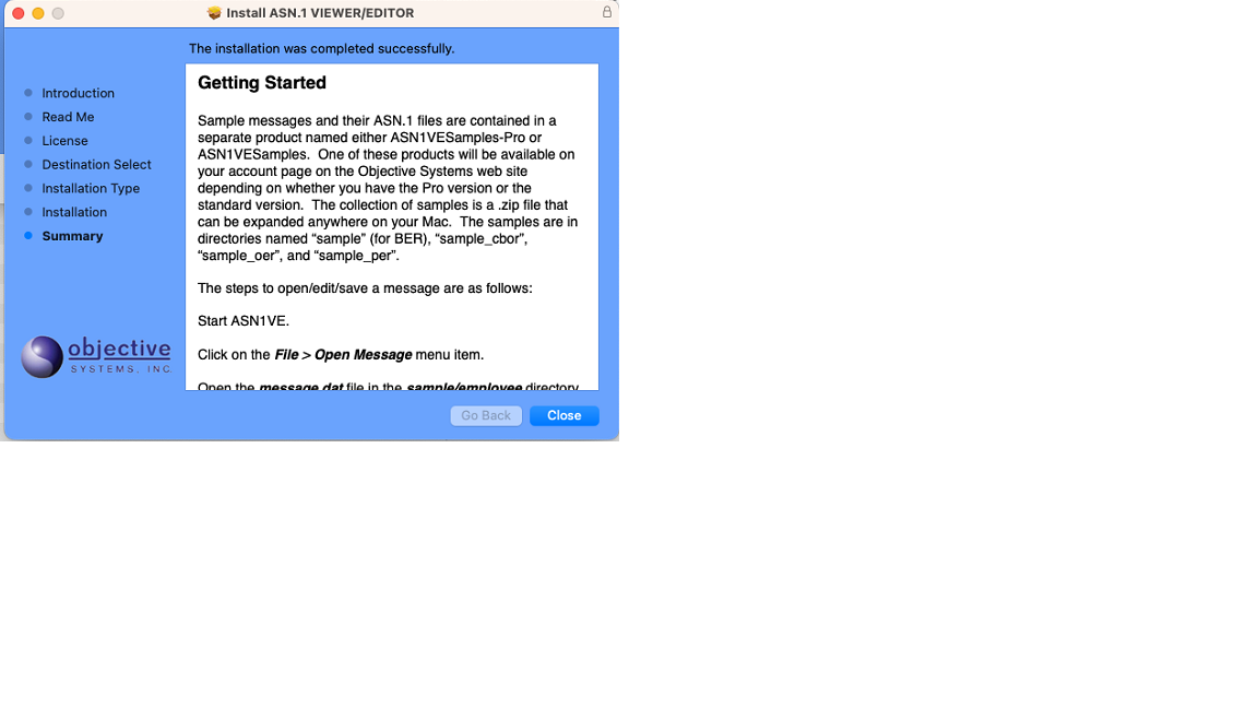 ASN1VE samples are provided as a separate product named either ASN1VESamples-Pro or ASN1VESamples, depending on whether the Pro version or the standard version was purchased. One of these products will be available on the user's account page on the Objective Systems web site. The samples are contained in a .zip file that can be expanded wherever desired.