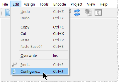 To enter the key value, the Edit -> Configure command is used:
