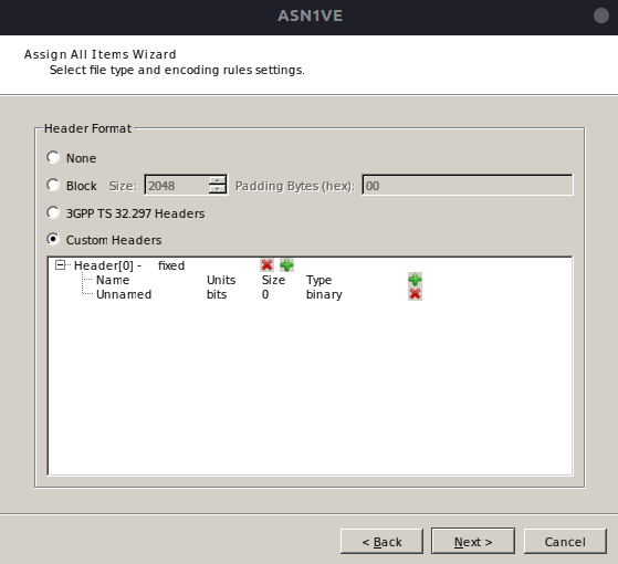 In the New Message Dialog and in the Project View Window, the option exists to create or modify custom headers. Invoking this option brings up a dialog similar to the following: